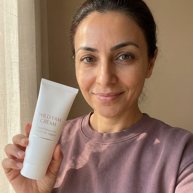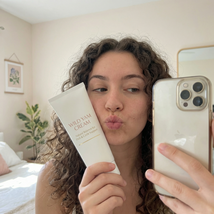 A hormone-supporting cream made with Wild Yam and Vitex to help relieve bloating, mood swings, PMS, and menopausal symptoms —so you can feel like yourself again.